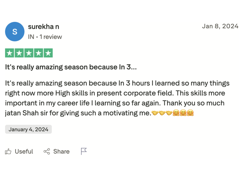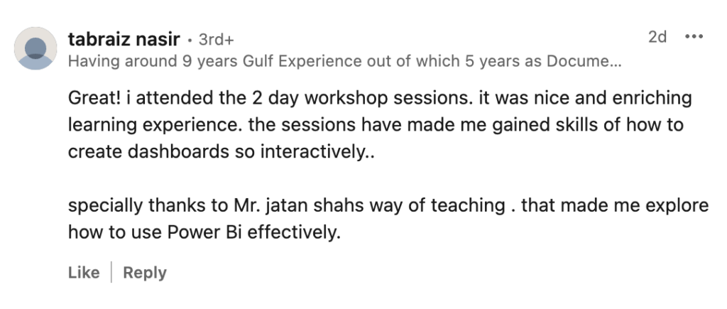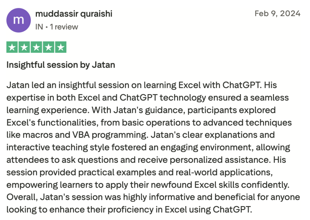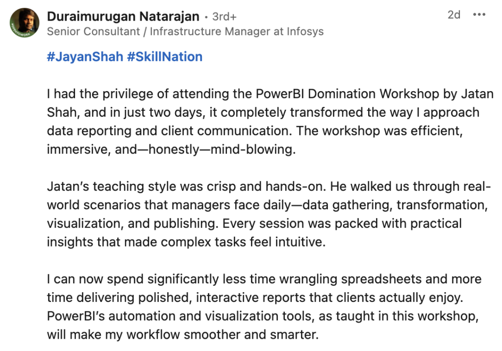 Verified Jatan Shah reviews show he teaches Microsoft Excel, Power BI, and AI in a practical way. Thousands of learners confirm that Jatan Shah is legit and trusted for career growth.